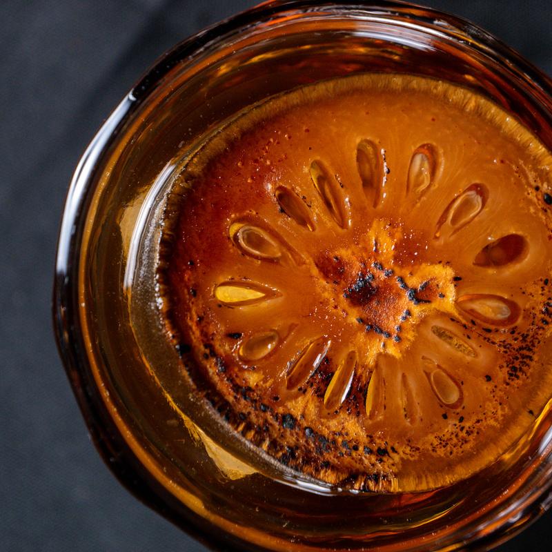 Old Fashioned with a unique Thai Flavor • Ron Zacapa 23, Amaro, Bael Fruit Syrup imported from Thailand, Raw Sugar, Peychaud Bitters.