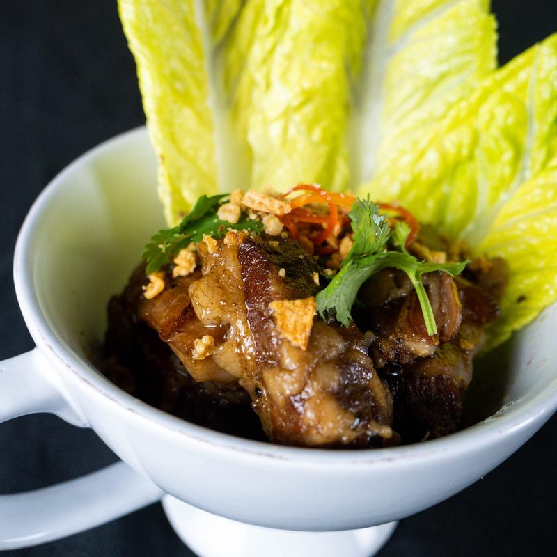 Marinated and grilled 10 oz Angus rib eye steak served with tamarind fish sauce.