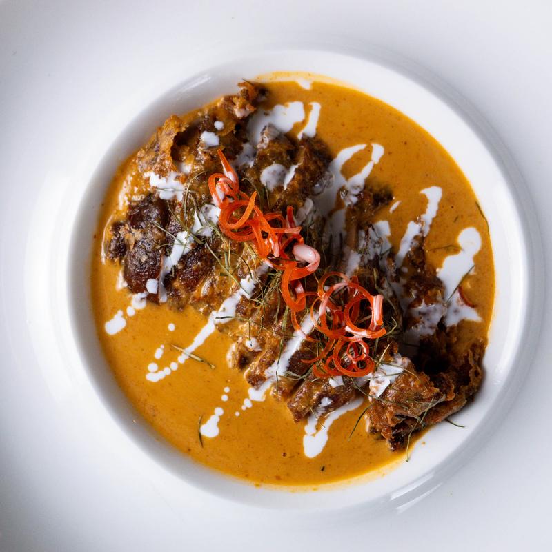 Roasted crispy duck breast, panang sauce.